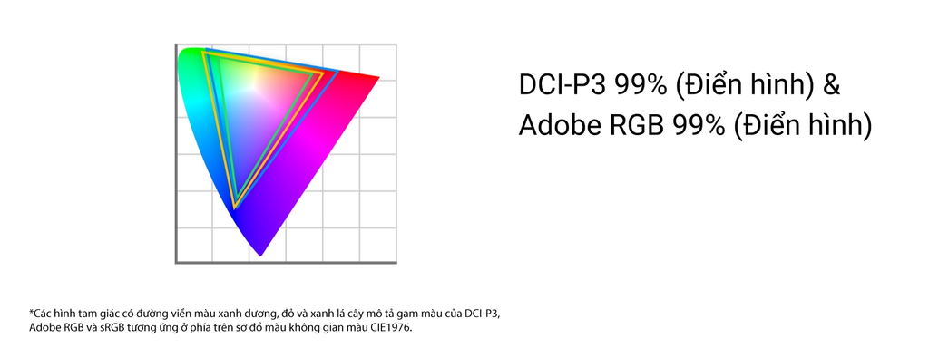 DCI-P3 99% (Điển hình) & Adobe RGB 99% (Điển hình)