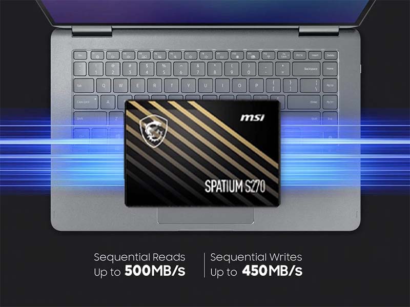 Ổ cứng SSD MSI SPATIUM S270 2.5-Inch SATA III đạt hiệu suất đọc ghi đáng kinh ngạc, giúp bạn hoàn thành công việc hàng ngày của bạn nhanh chóng với tốc độ đọc lên đến 500MB/s và ghi 450Mb/s.