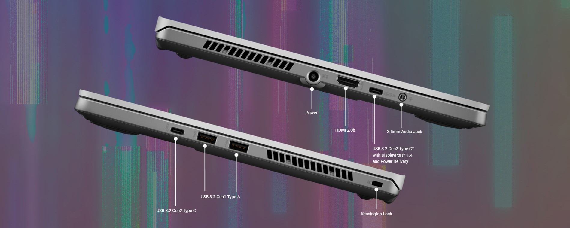 Asus ROG Zephyrus G14 hoạt động đa nhiệm hiệu quả hơn qua cổng USB-C với DisplayPort 1.4, xem phim 4K UHD trên màn hình lớn hoặc dễ dàng kết nối máy chiếu với HDMI 2.0b. Kết nối các thiết bị ngoại vi để bạn thoải mái sáng tạo.